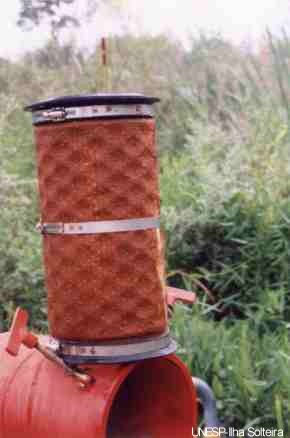 FOTO 19 - Filtros de malha metálica (200 mesh) e polipropileno (30 microns).