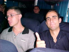 no onibus a caminho do hotel em Fortaleza.