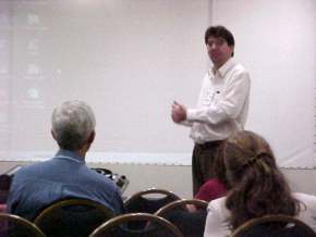assistindo a apresentação de trabalho.