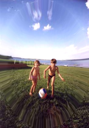 Paisagem maravilhosa e filhos participando ...