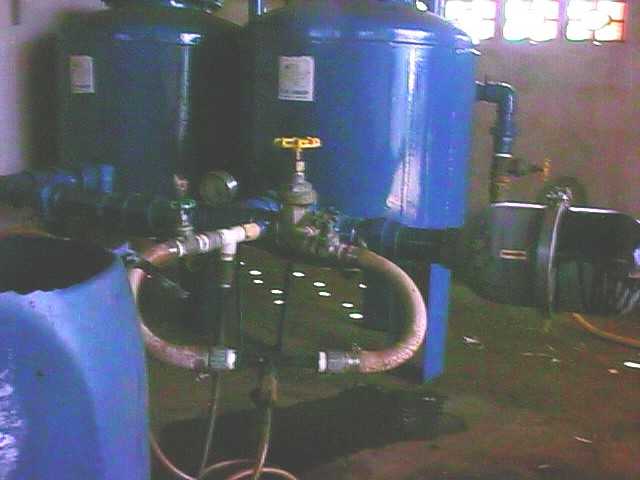 Detalhe dos filtros de areia e discos, venturi (injetor de fertilizante).