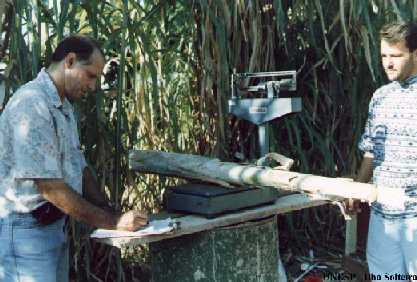 FOTO 8 Detalhe do tolete (que irá ao laboratório) sendo pesado.