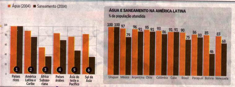 do Sul. No entanto, na coleta de esgoto, o país volta para patamares