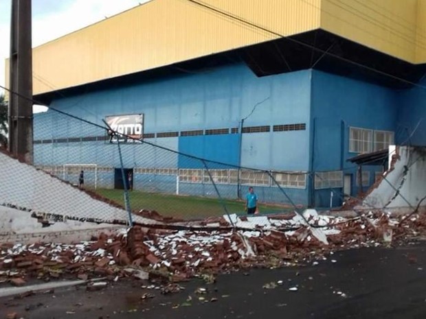 Muro de um clube de Andradina caiu, mas ninguém se feriu (Foto: Arquivo Pessoal)