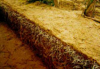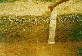 Sistema radicular de pupunheira à 60 cm da planta (Bassoi - EMBRAPA).